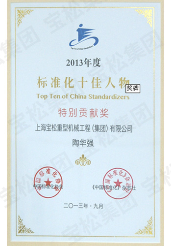 • 2013年9月获得中国标准化十佳人物特别贡献奖