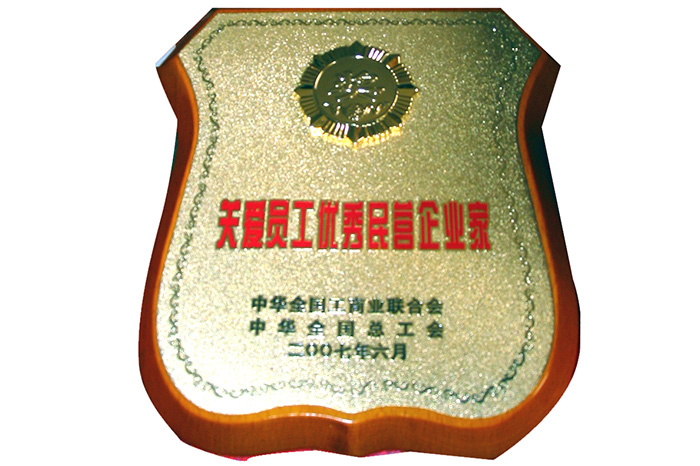 • 2007年8月陶董获中华全国总工会“关爱员工优秀民营企业家”奖牌