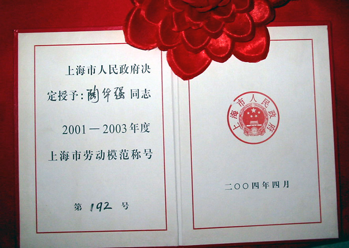 • 2004年4月陶董获2001-2003年度上海市劳动模范称号