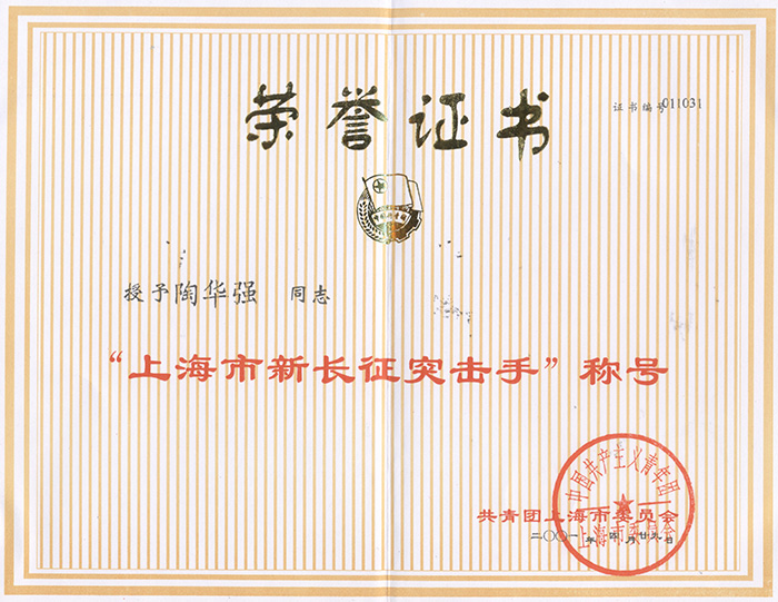 • 2001年4月29日陶董获“上海市新长征突击手”称号